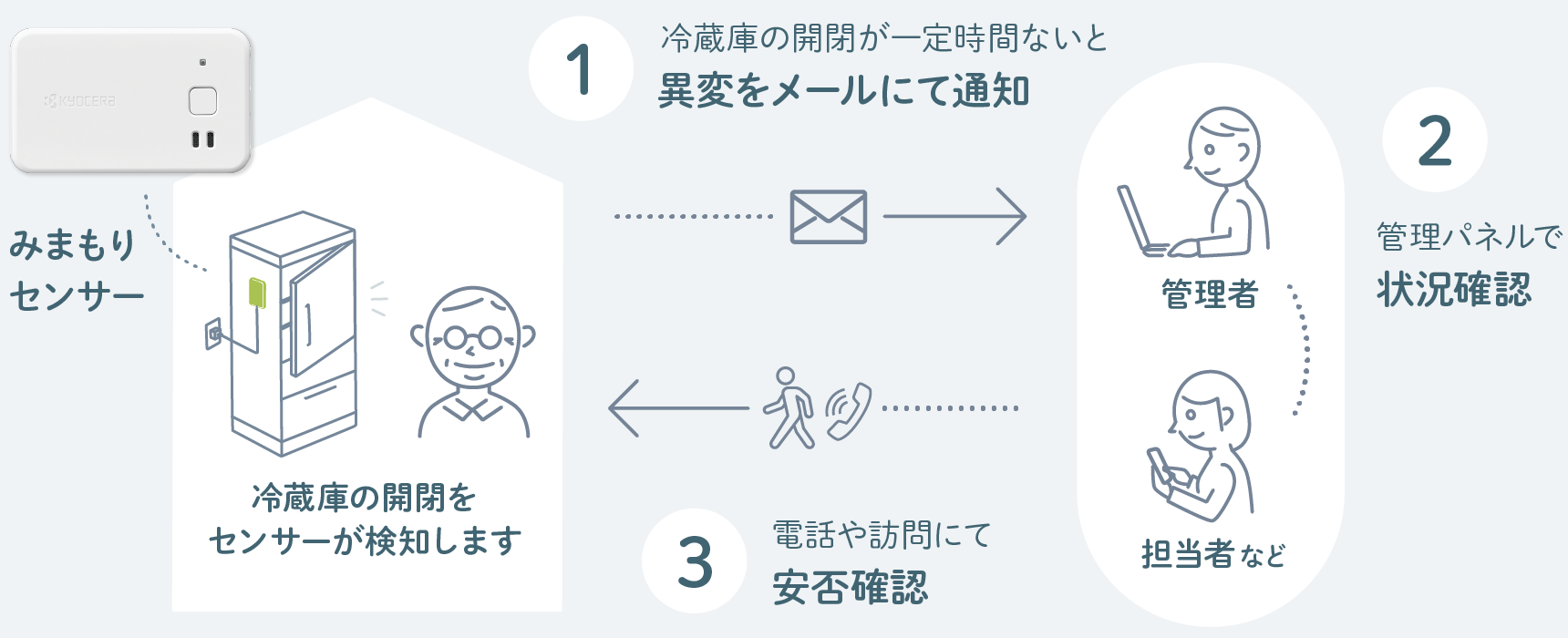 専門知識不要で、すぐに導入できる見守りサービスです