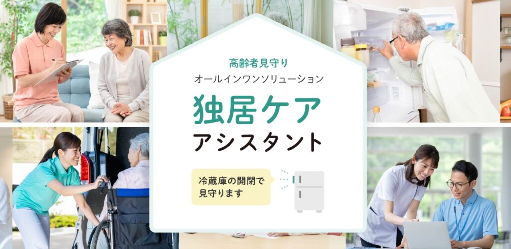 独居ケアアシスタントは、高齢者見守りサービスの導入を検討される法人向けに、見守りに必要な基本機能をひとつにまとめたオールインワンソリューションです。高齢者宅の冷蔵庫にセンサーを設置し、一定時間開閉がない場合には体調不良等の可能性があると判断し、導入された法人様にメールで通知します。通知を受け取った法人様が、安否確認を行う仕組みです。詳細はサービス紹介ページをご確認ください。